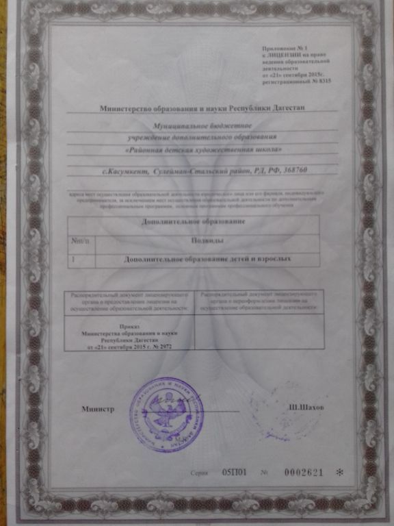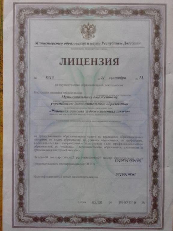 | Сокращенное наименование образовательной организации* | МБУДО "Районная Детская Художественная Школа" С.Стальского р-она РД |