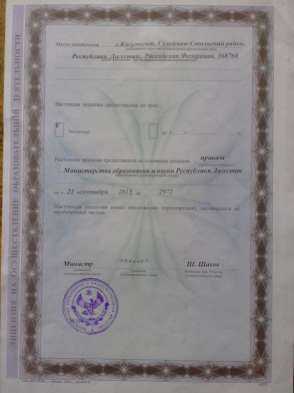 | Адрес местонахождения образовательной организации* | Сулейман-Стальский район с.Касумкент ул.Г.Гасанова 8 |